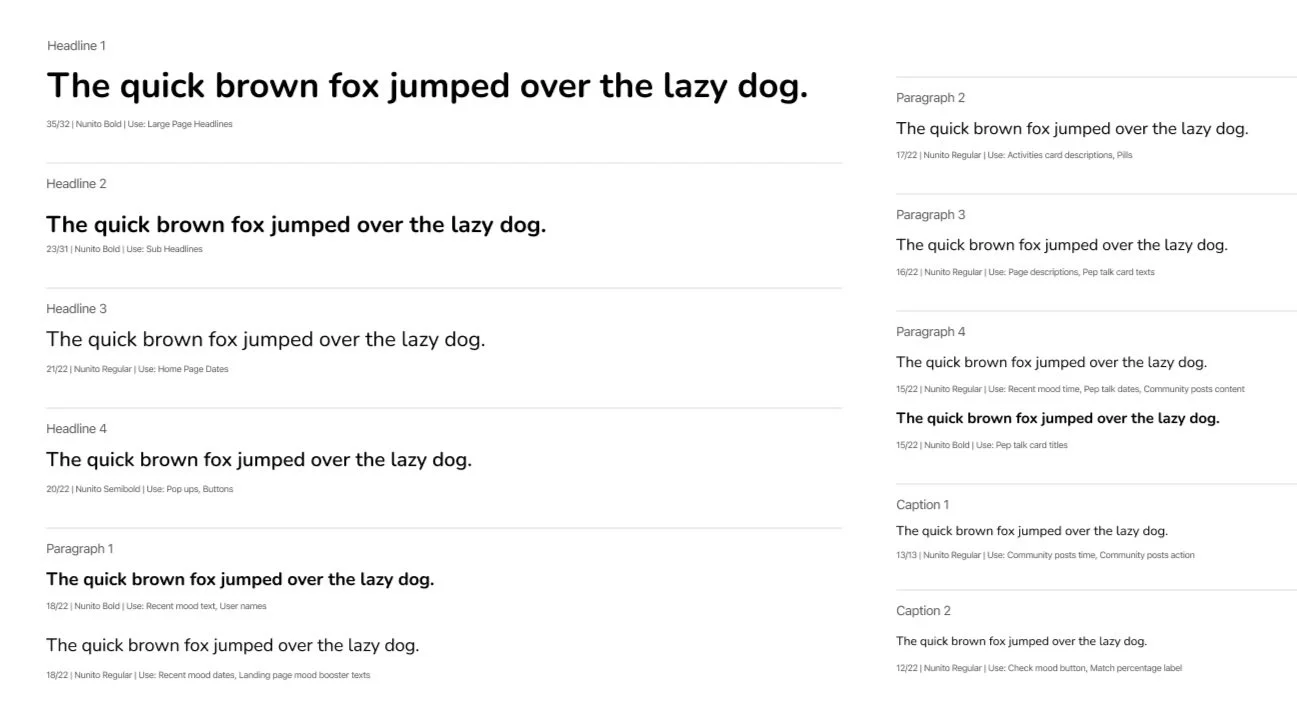 I picked Nunito because it’s rounded, cute and a little bit childish. It’s playful, but not too much (hint: the notorious comic sans 👀) It’s got this harmless and down-to-earth look that can easily connect with the users. It’s not too business-like or serious, so it wouldn’t make the users feel they’re completing another task or chore.