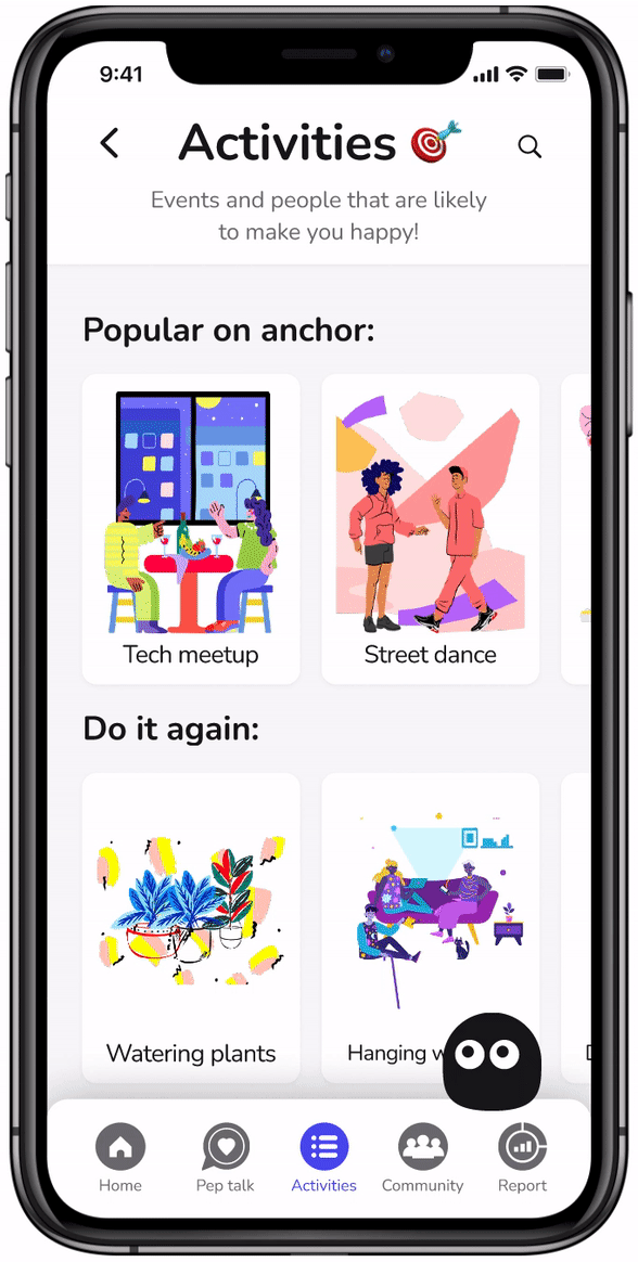 anchor. is an iOS app designed to solve loneliness problems in young people. It’s a warm hug, a self-care kit, and a user’s manual for their own mind and body.
